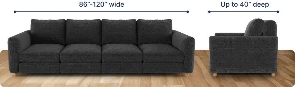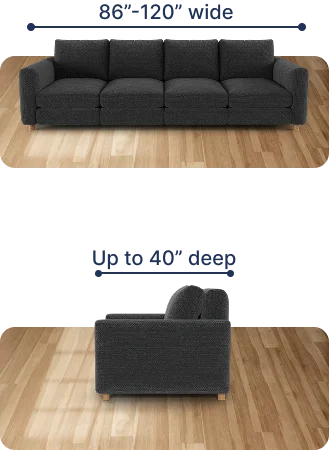 The fitting range for our 4 seater сouch сovers is between 86" and 120". To ensure that our cover will fit your piece, the widest width of your couch should fall within this suggested fitting range. For our covers to perfectly work with your furniture, the following requirements should also be met: