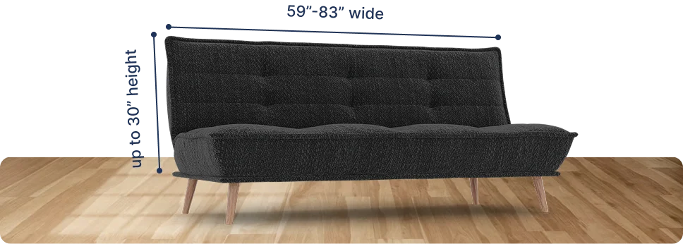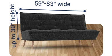 The fitting range for our futon covers is between 59" and 83" for width, and between 40" and 50" for total depth. To ensure that our cover will fit your piece, the couch width and total depth should fall within this suggested fitting range.