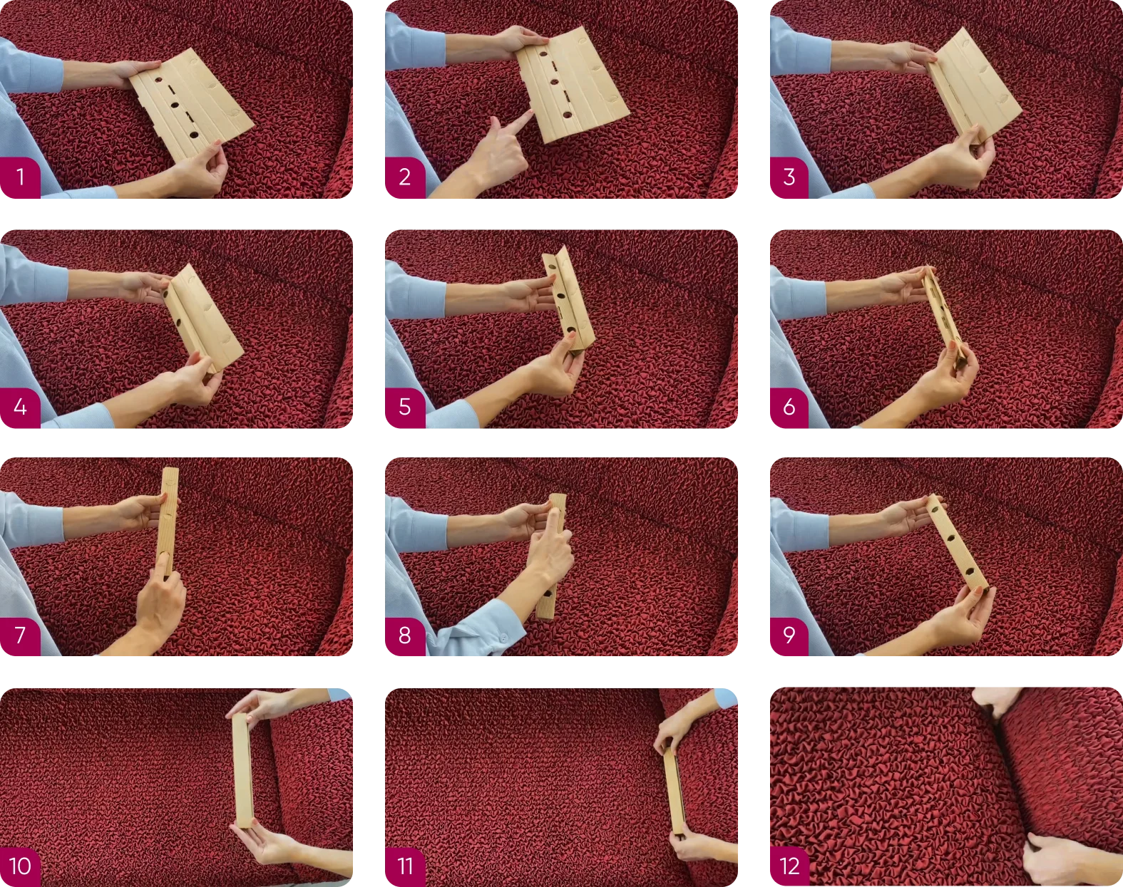 We include anti-slip cardboard inserts with each of our covers to prevent the slipcovers from sliding on your couch. These inserts should be tucked into the grooves between the furniture armrests and seat cushions. The deeper you tuck the inserts, the better — they'll be less likely to pop out, helping to keep your slipcovered furniture looking nice and tidy.