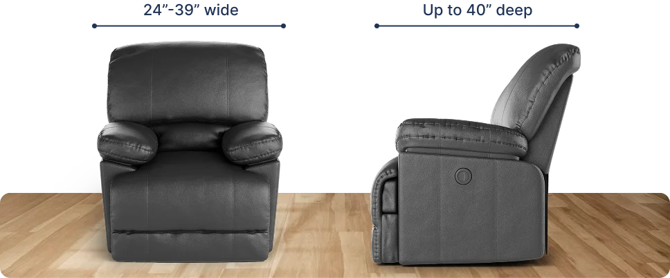 The fitting range for our recliner covers is between 24" and 43". To ensure that our cover will fit your piece, the widest width of your recliner should fall within this suggested fitting range. For our covers to perfectly work with your furniture, the following requirements should also be met: