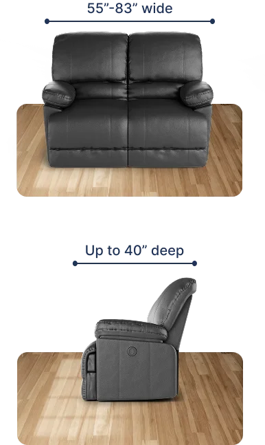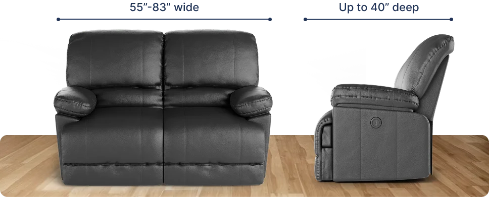 The fitting range for our reclining loveseat covers is between 55" and 83". To ensure that our cover will fit your piece, the widest width of your reclining loveseat should fall within this suggested fitting range. For our covers to perfectly work with your furniture, the following requirements should also be met: