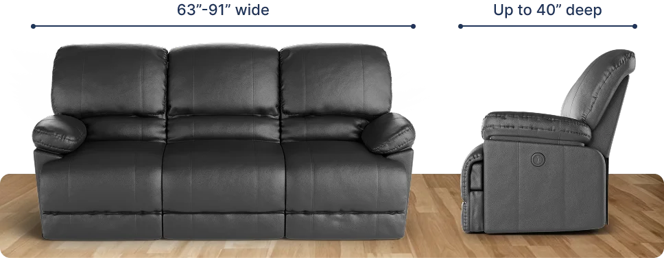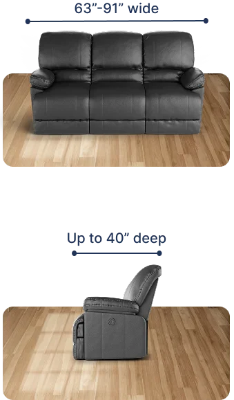 The fitting range for our recliner sofa covers is between 63" and 91". To ensure that our cover will fit your piece, the widest width of your reclining sofa should fall within this suggested fitting range. For our covers to perfectly work with your furniture, the following requirements should also be met: