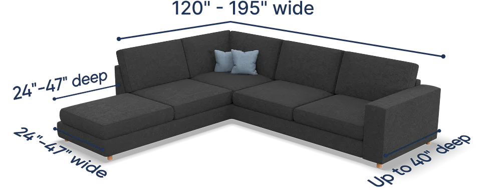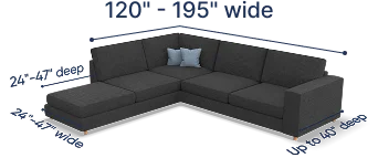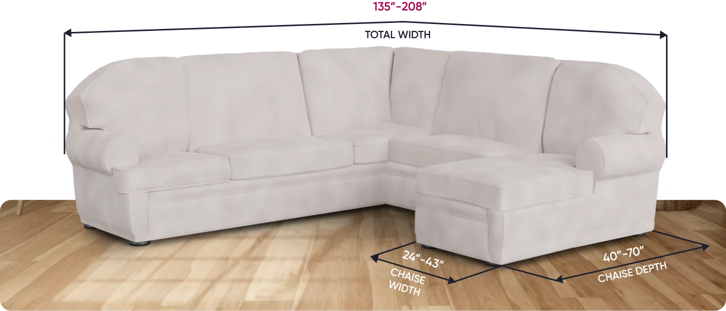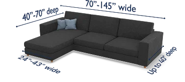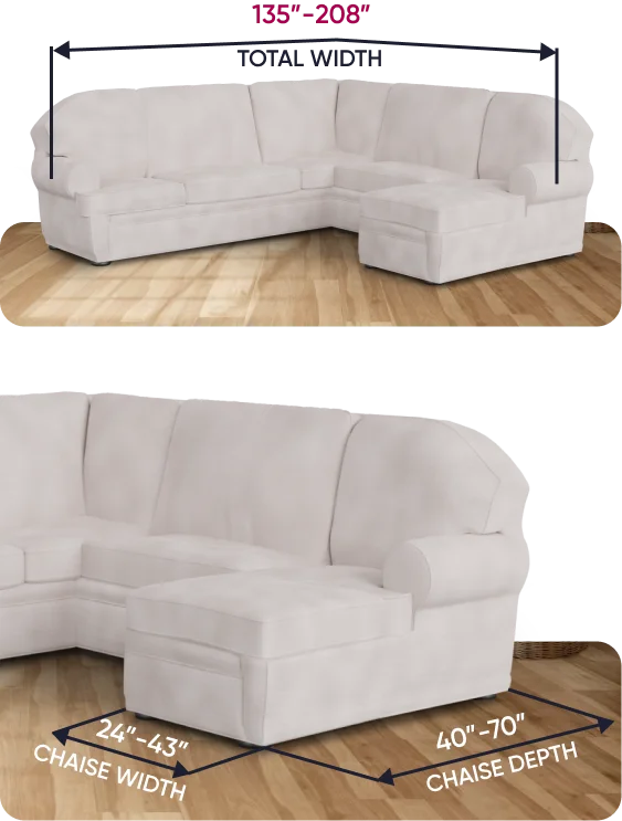 Note: in cases where your sectional couch dimensions are slightly out of the suggested fitting range, the slipcover might fit your furniture due to the stretchy nature of its fabric. However, we still recommend contacting our support team first to ensure that the product will work for your sectional sofa sizes!